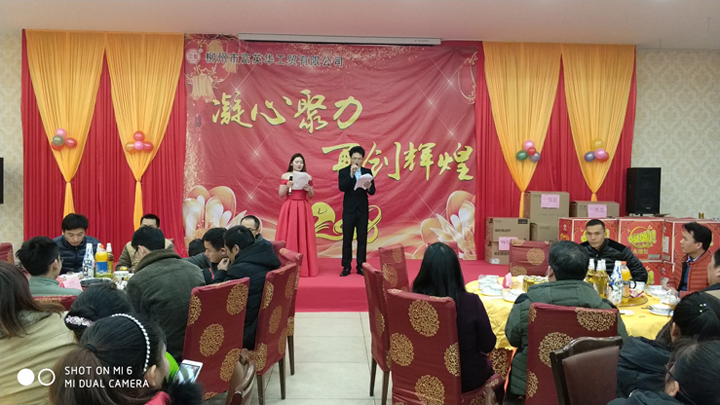"凝心聚力再創(chuàng)輝煌"。2018年2月10日晚,柳州市富英華工貿有限公司 2018年會在度假村隆重召開,公司總部全體員工、各分(子)公司優(yōu)秀員工代表、同行嘉賓、優(yōu)秀供應商等共400余人齊聚一堂,共襄盛舉。